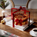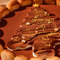 We infuse panettone into our classic tiramisù cream, replace the ladyfingers with espresso soaked panettone slices, and finish it all with a luxurious dusting of cocoa and edible gold.